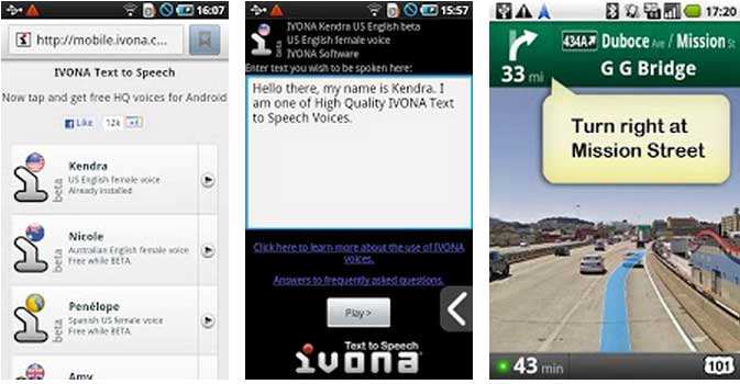 Molto semplicemente installando IVONA Text-to-Speech HQ e la lingua italiana sul nostro device Android potremo in un secondo momento sostituire la voce al navigatore di Google e non solo. Qui a seguire il video dell’applicazioni e le immagini dove è anche possibile il navigatore di Google: