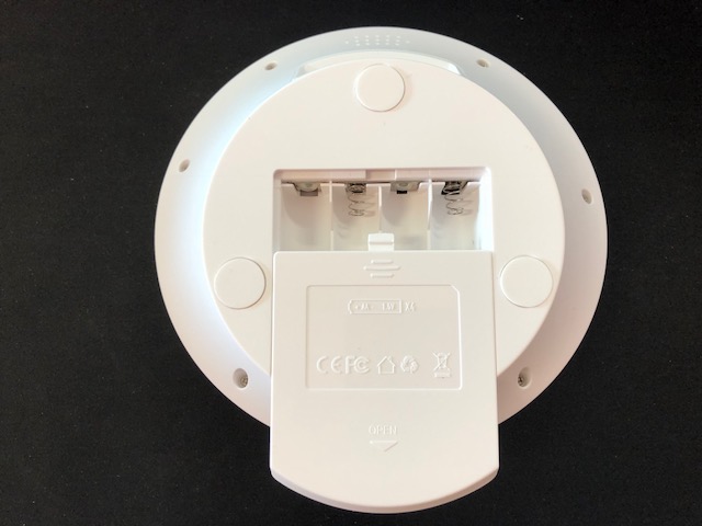 - A seconda dei nostri gusti potremo usare 4 Pile stilo da inserire nel vano sotto il generatore di rumore bianco oppure usare il cavetto USB e collegarlo al carica batteria