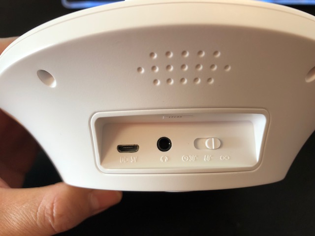 Nella parte in cui avete collegato il cavetto potrete trovare anche un pulsante che ci permette di posizionarlo su 30, 60 o sul simbolo infinito. In caso vogliate spegnere il generatore di rumore dopo 30 minuti dovremo impostare il pulsante su 30, mentre se volete che il timer lo spenga dopo 60 minuti portate la levetta su 60 minuti.