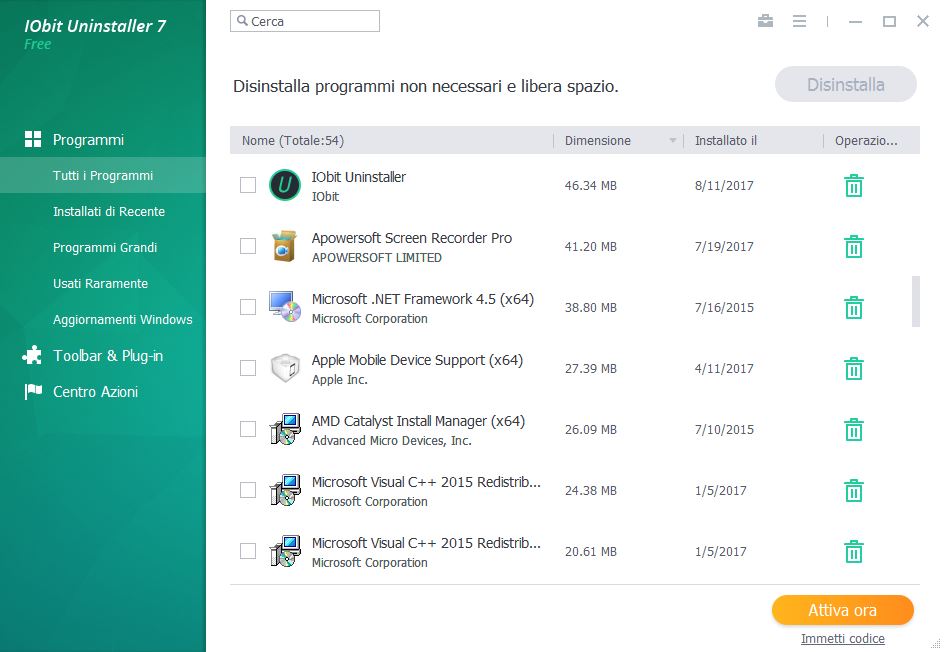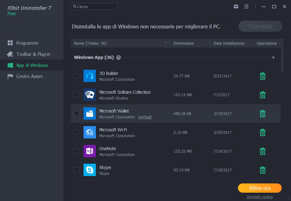 - La disinstallazione Rapida ora supporta più programmi
