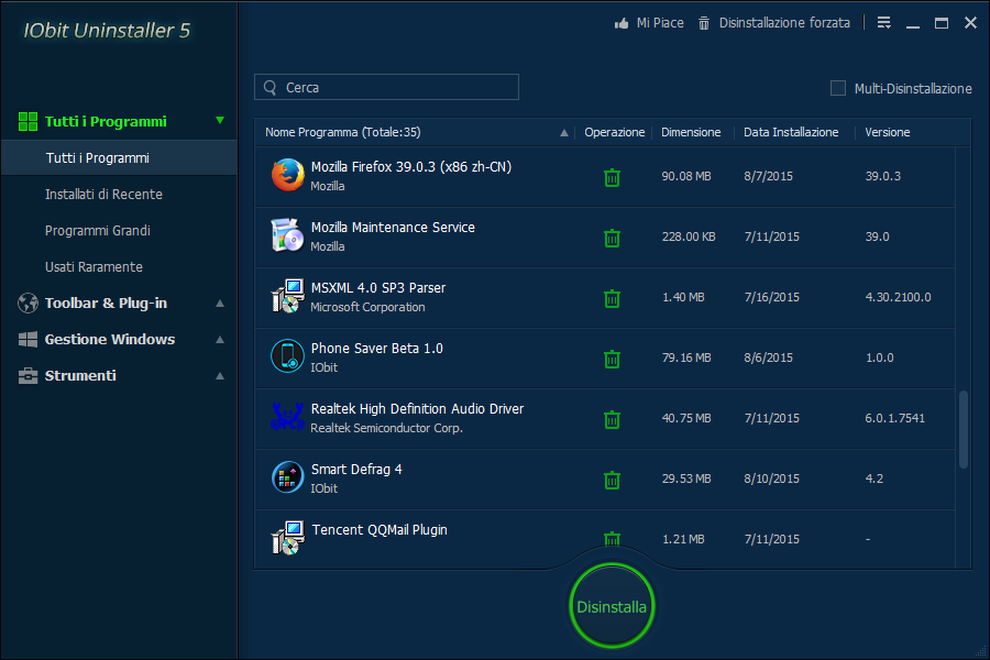 [AGGIORNAMENTO 12 AGOSTO 2015] IObit Uninstaller 5 viene rilasciata oggi, in questa versione, oltre ai miglioramenti della Scansione Potente e della Disinstallazione Potenziata che riescono a disinstallare completamente file residui, plugin e programmi iniettati all’interno del browser, supporta anche la disinstallazione dei programmi di Antivirus. Sono state aggiunte nuove funzioni e reso compatibile il programma anche con l’ultima versione di Windows 10.