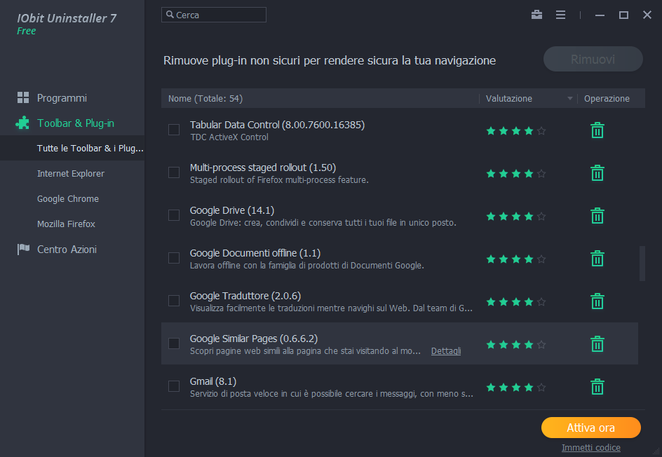 - Migliorata la Rimozione di Plug-in e Toolbar per controllare le estensioni dannose del browser internet ed eventuali programmi installati in automatico