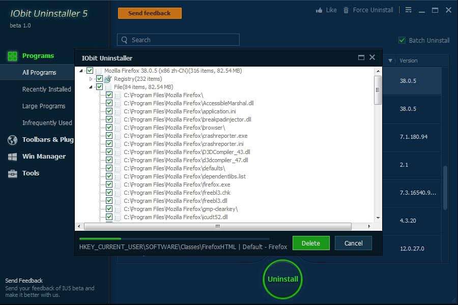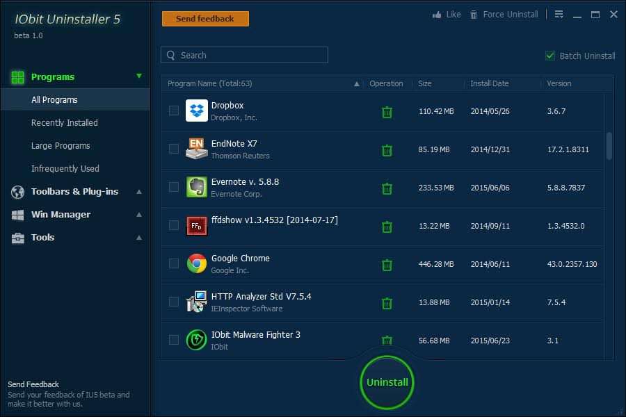 IObit Uninstaller offre il modo più semplice e veloce per disinstallare i programmi e i plugin del browser. Con la Scansione Potente e la funzionalità di disinstallazione rafforzata, tutti gli avanzi inutili possono essere rimossi completamente dal computer, proprio come se non fossero mai stati installati sul PC. IObit Uninstaller si concentra sulla sicurezza online, è in grado di rimuovere i plugin maligni indesiderati o toolbar, che non possono essere eliminati da un programma anti-spyware.
