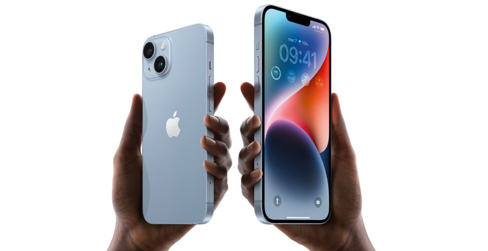 iPhone 14 e 14 Plus con le due fotocamere dietro e iPhone 14 PRO e 14 Pro Max con le 3 fotocamere dietro.