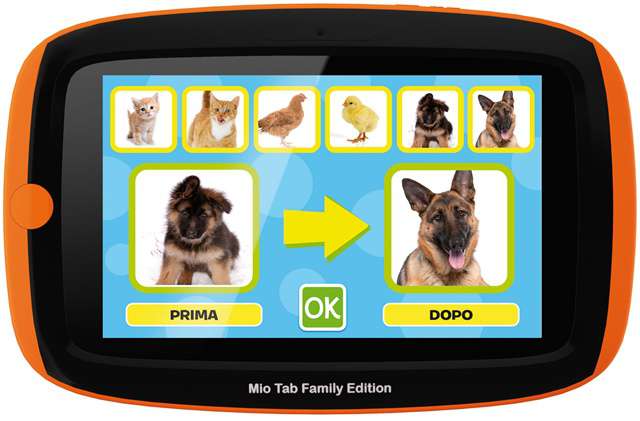 Caratteristiche molto simili anche per il Mio Tab Family dove fra le differenze sostanziali possiamo trovare un aspetto esteriore differente insieme ad una personalizzazione pensata anche per i più grandi. In questo caso infatti essendoci una sezione per i più piccoli e una per i più grandi, il tablet in questione è consigliato ad un pubblico che va dai 3 ai 99 anni.