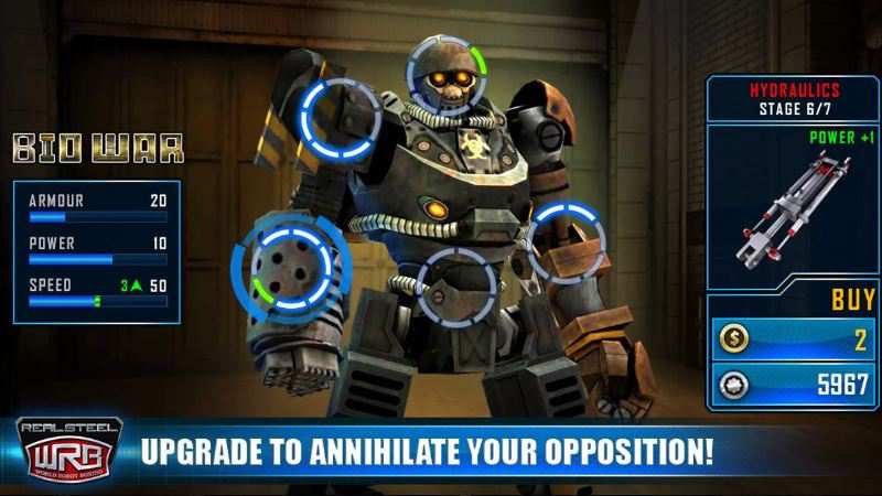 Una volta scelto e capito le mosse del nostro robot potremo comprare diversi potenziamenti che ci permetteranno di sconfiggere più facilmente i nostri nemici. I potenziamenti si potranno acquistare in almeno 3 metodi: 2 tipi di moneta o la possibilità di effettuare acquisti in-app.