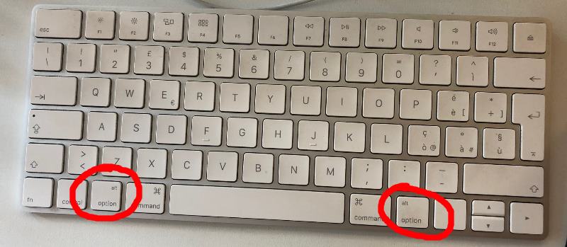 A seconda della tastiera in nostro possesso potremo trovare il tasto Opzione vicino al tasto Control.
