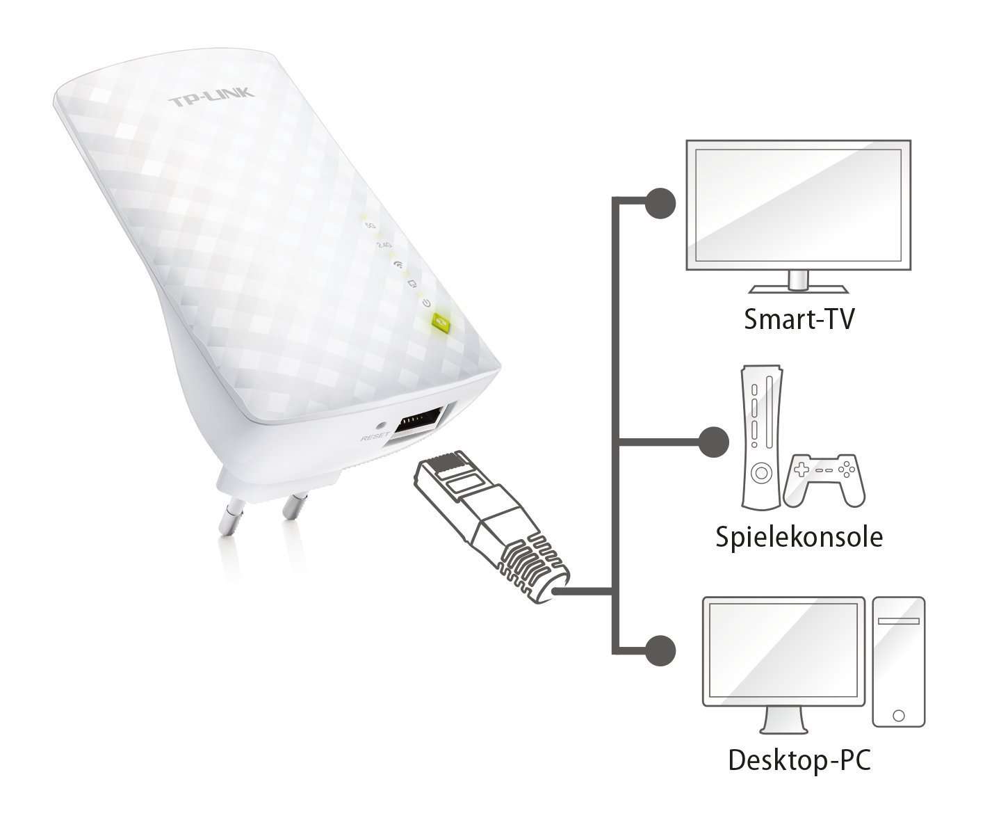 TP-LINK RE200 può essere utilizzato anche con il cavo Ethernet per collegare console come Xbox, computer PC, portatili, tablet e altri device.